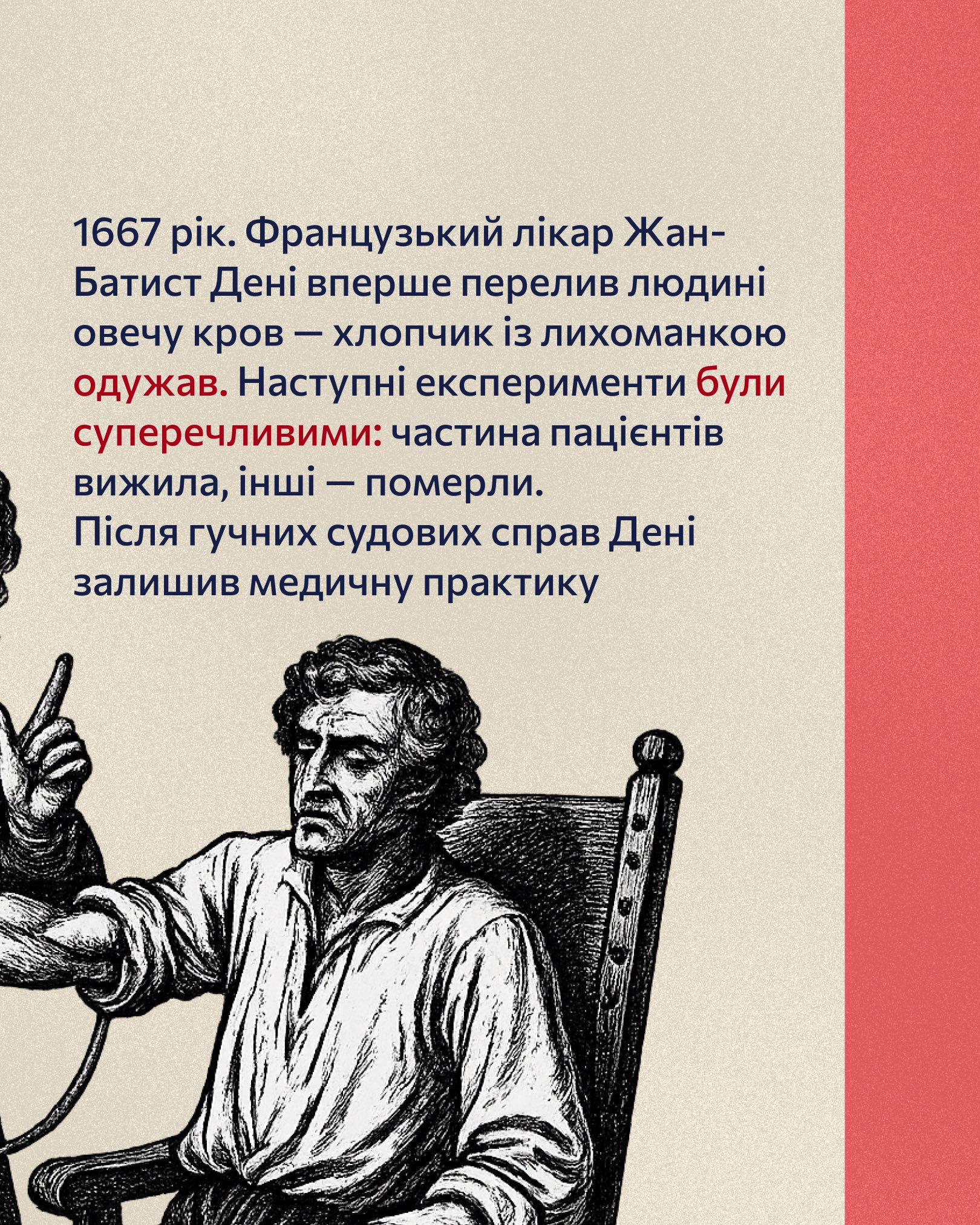 Від уявлень про «цілющу кров» та небезпечних спроб переливань між тваринами і людьми — до перших усвідомлених кроків, що врятували життя.