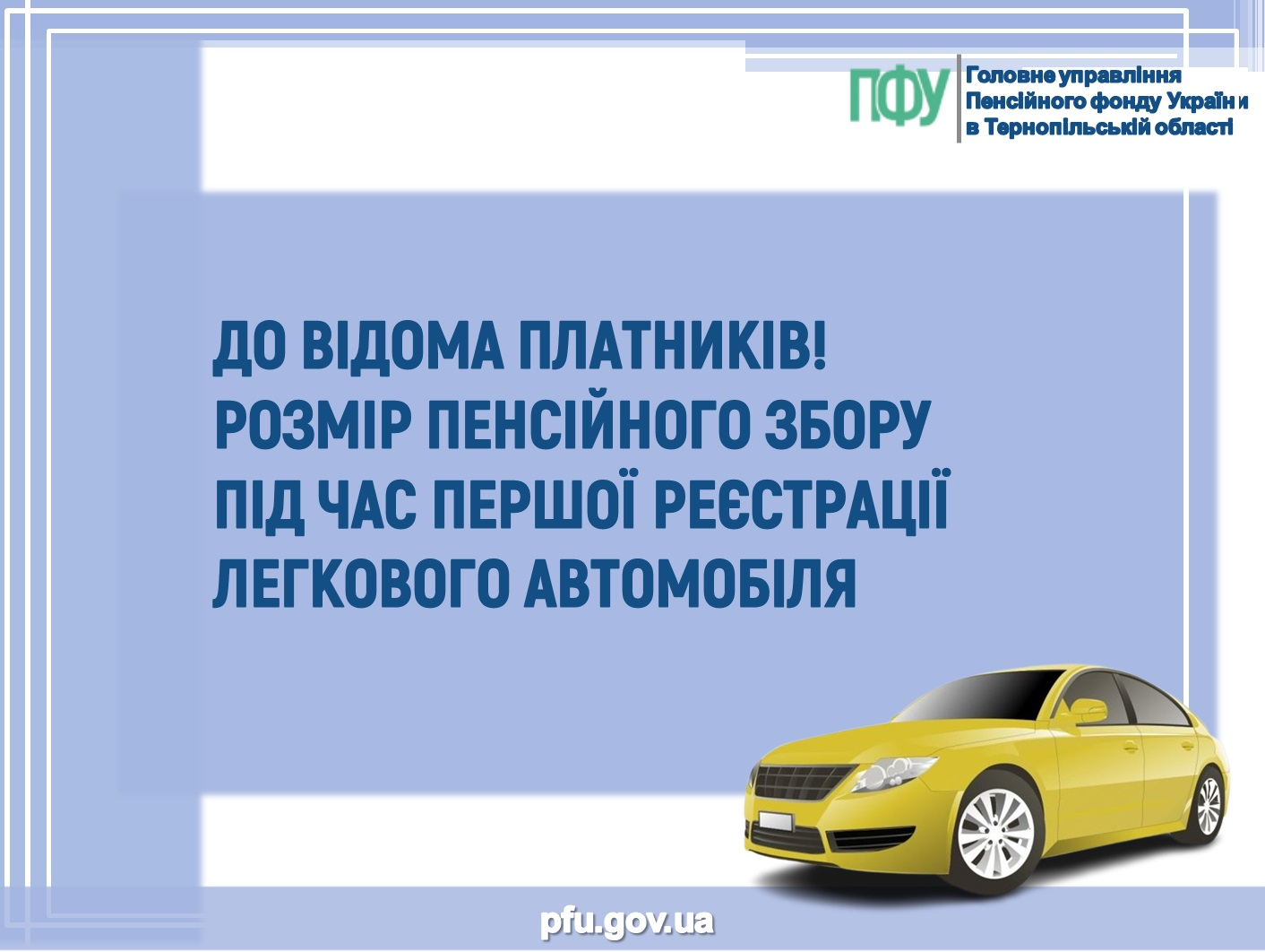Інформуємо, що з 01 січня 2026 року розмір вартості суми збору на обов’язкове державне пенсійне страхування при першій державній реєстрації легкового автомобіля в Україні змінився.