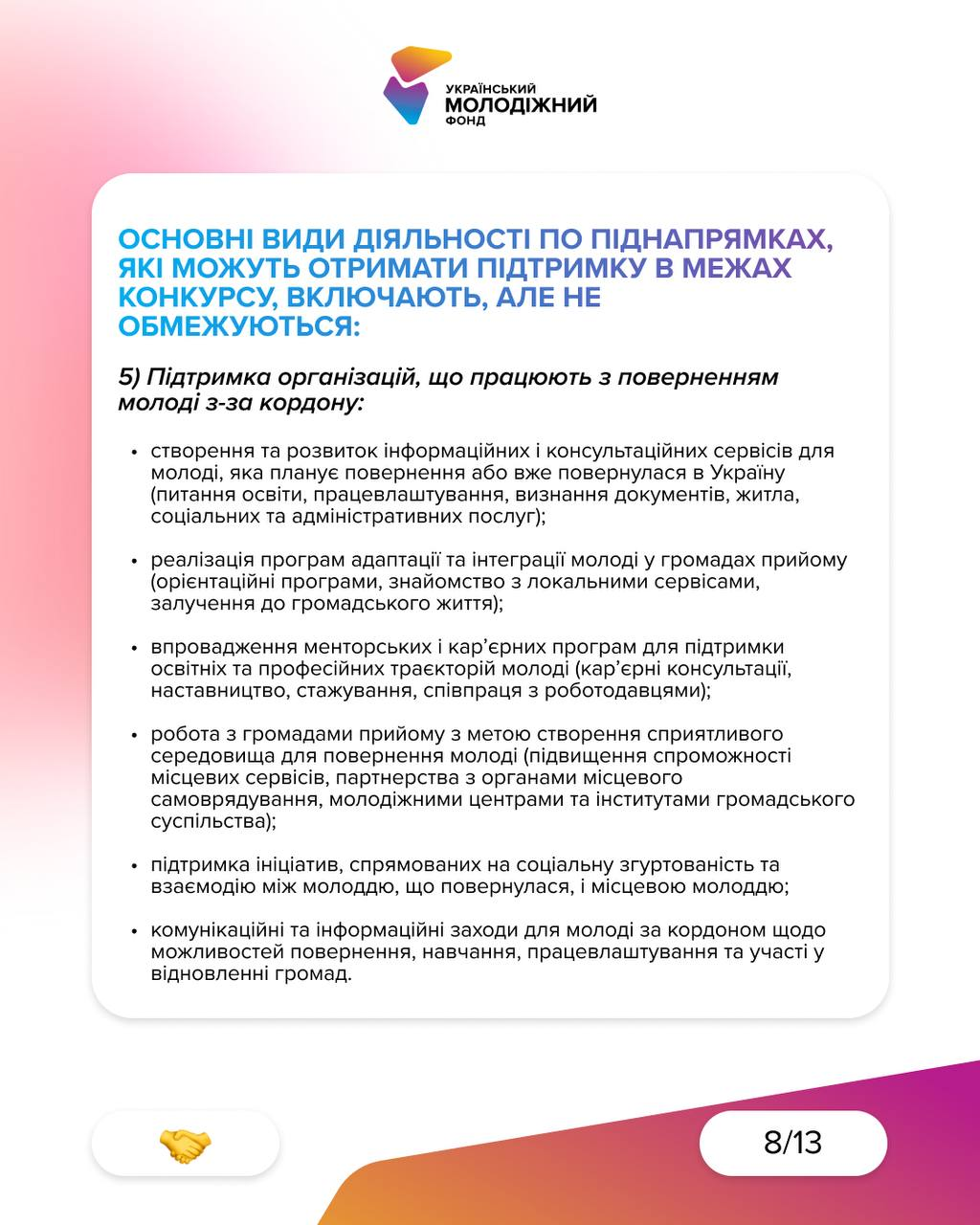 Відновлення громад та підтримка молоді, що повертається з-за кордону.