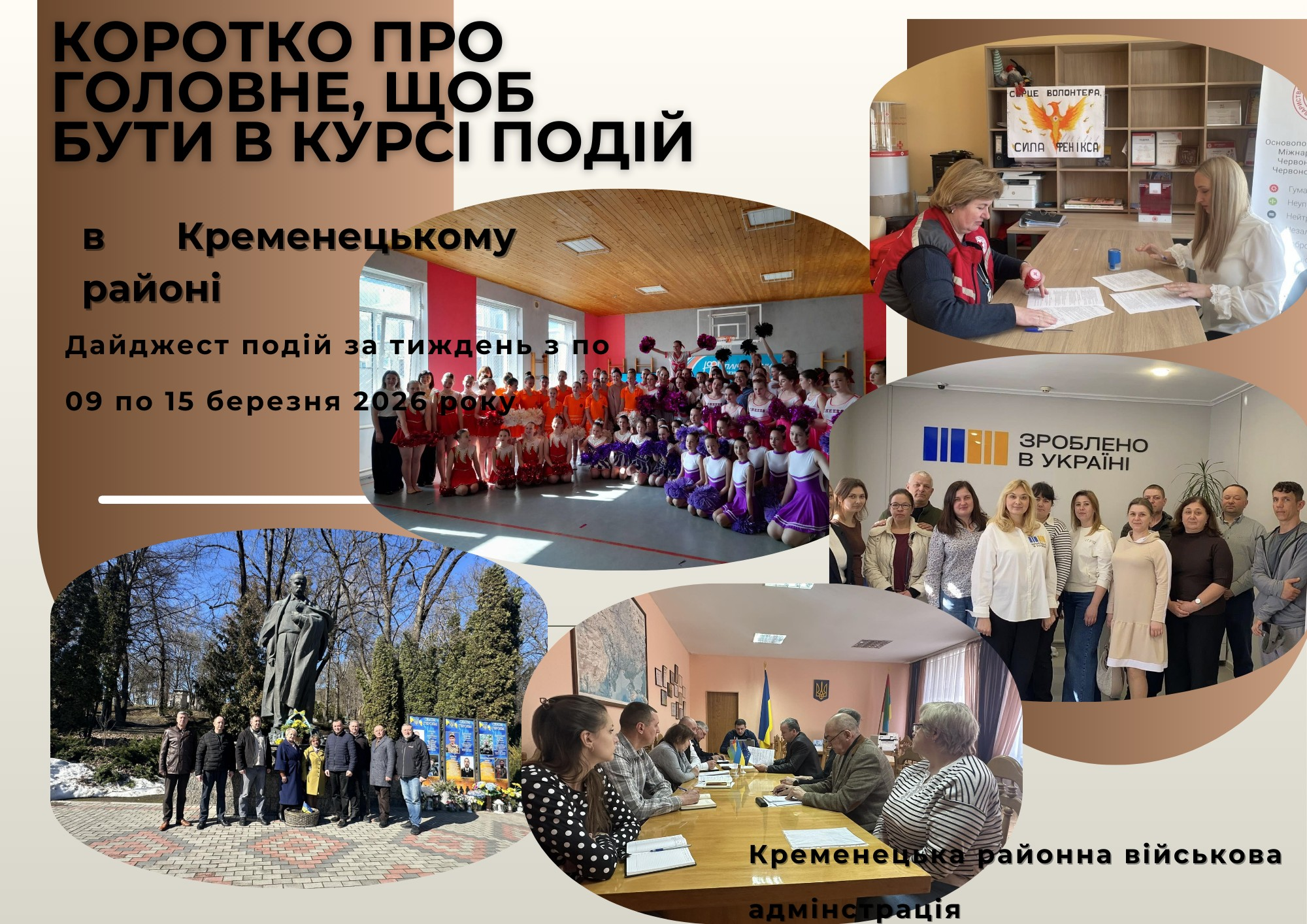 В закладах освіти та культури розпочато проведення заходів до 212-ї річниці від дня народження Шевченка Тараса Григоровича, українського поета, художника, мислителя; до Дня українського добровольця; дня працівників житлово-комунального господарства і побутового обслуговування населення.
