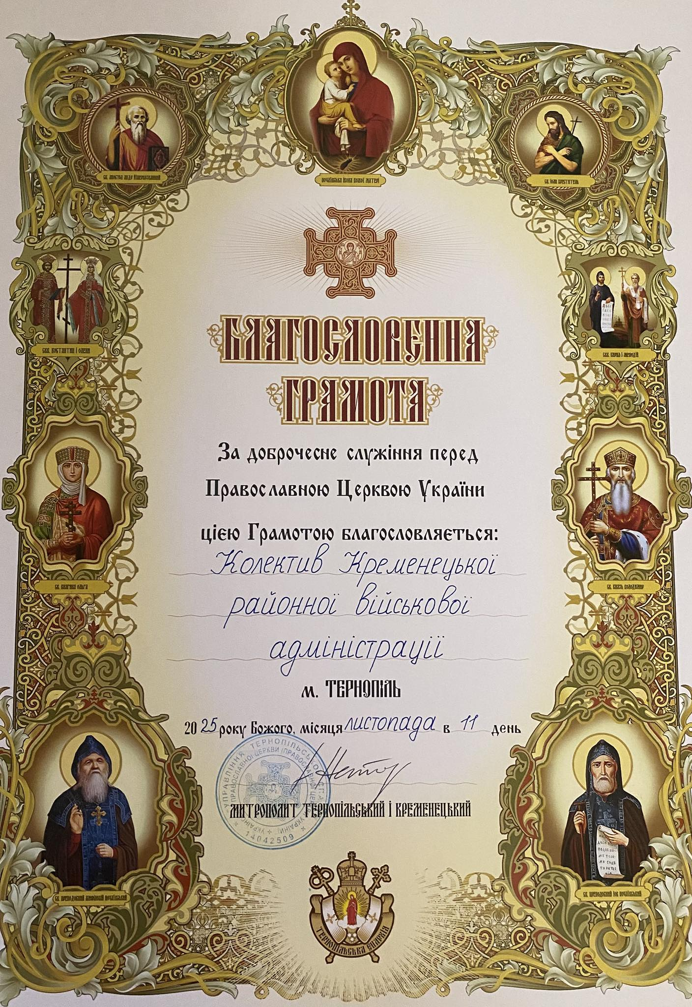 Сьогодні в с. Лішня у Всеукраїнському храмі-пантеоні святої праведної Анни було нагороджено Благословенною грамотою Православної Церкви України колектив районної