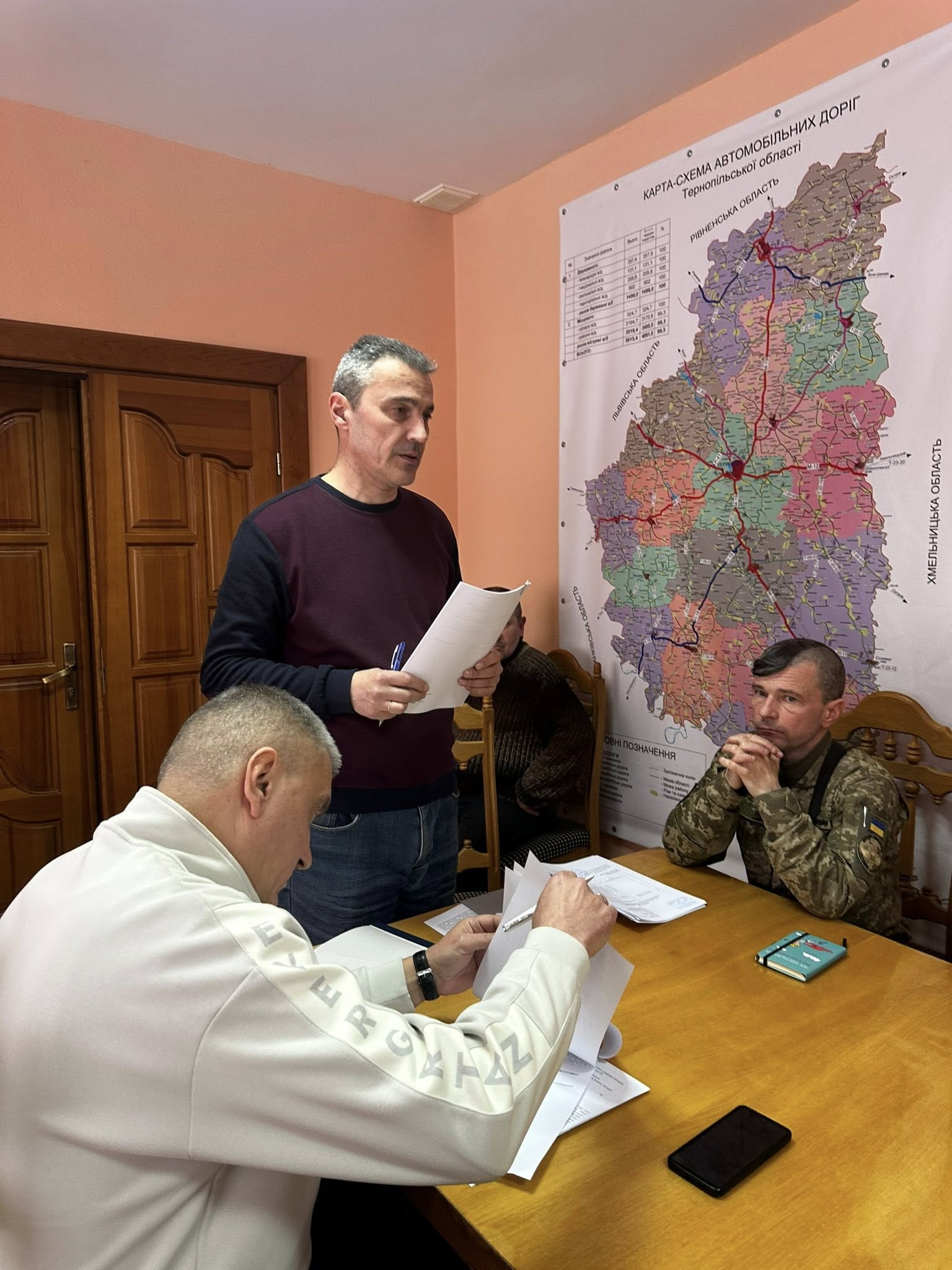 03 березня 2026 року начальник Кременецької районної військової адміністрації Віталій Кудлак спільно з представниками Кременецького районного територіального центру комплектування та соціальної підтримки та начальником Кременецького районного відділу поліції ГУНП в Тернопільській області провів нараду з головами територіальних громад району та представниками відділів Кременецького ТЦК та СП.