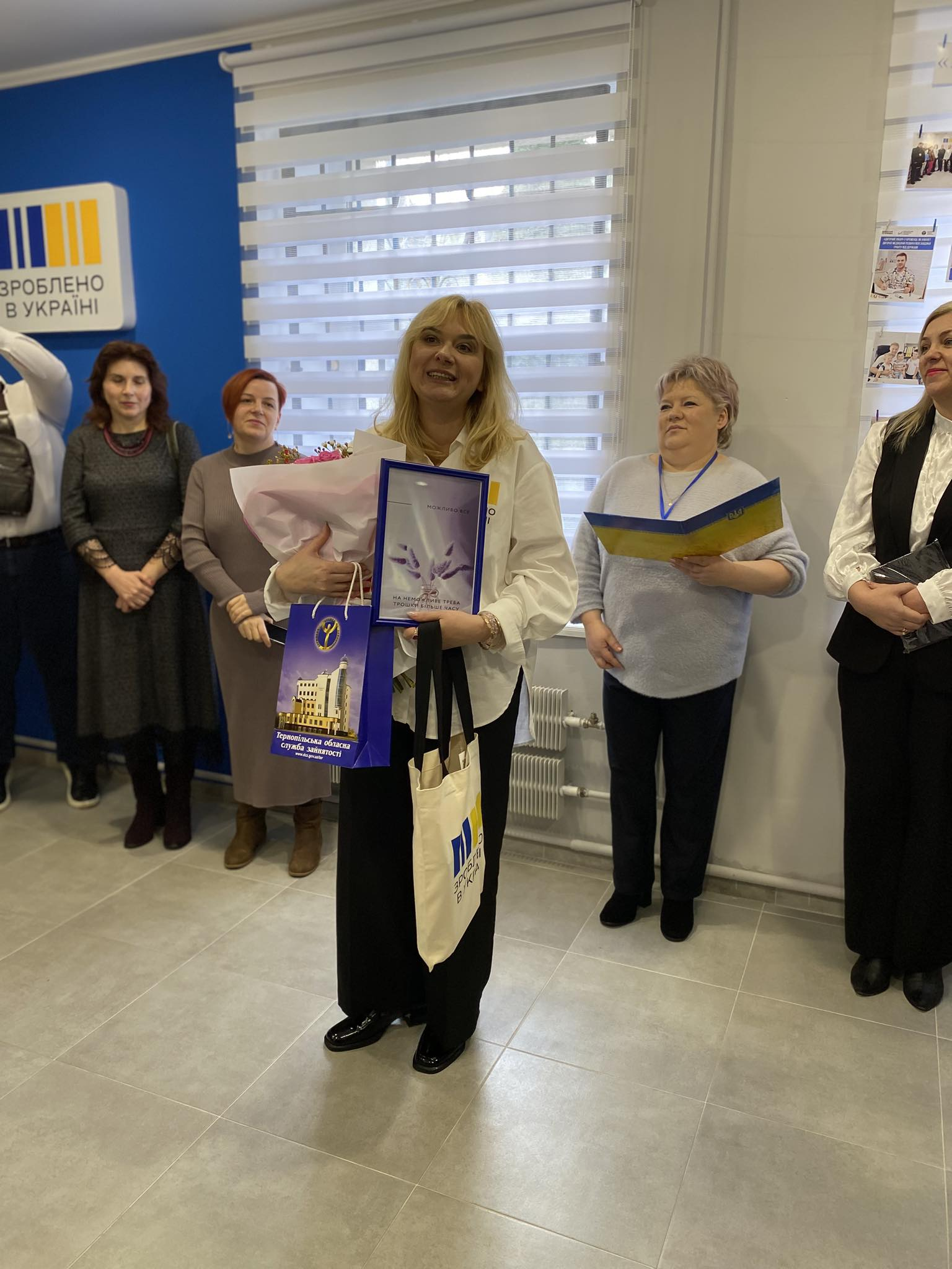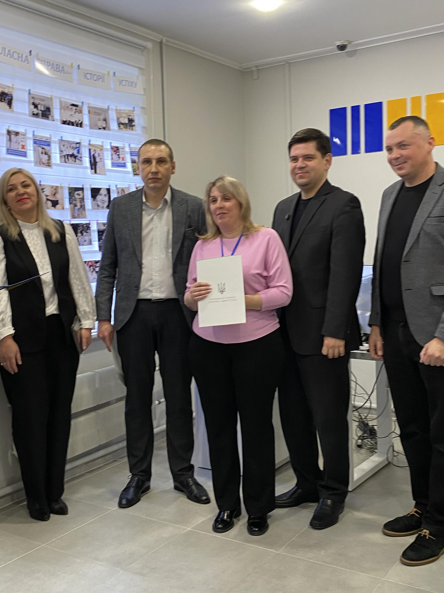 Під час урочистої частини працівники офісу задули символічну свічку на торті та було вручено сертифікат на грантові кошти