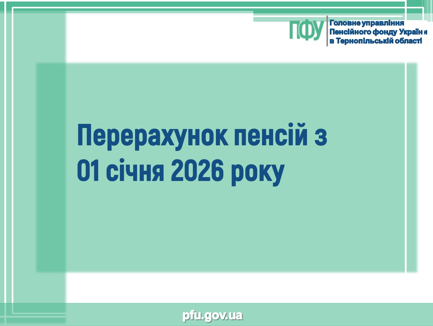 У зв’язку з цим, Головним управлінням Пенсійного фонду України в Тернопільській області з 01 січня 2026 року буде проведено перерахунок складових пенсійних виплат, які базуються на розмірі прожиткового мінімуму для осіб, які втратили працездатність: мінімальної пенсії за віком, доплати за понаднормативний стаж, підвищення, надбавок, інших пенсійних виплат, установлених законодавством.