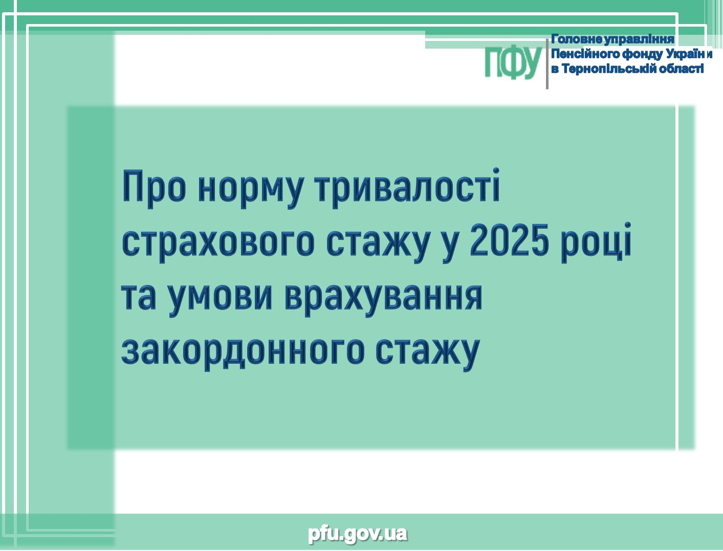 Тривалість стажу, необхідного для призначення пенсії при досягненні 60-річного віку, визначена Законом України “Про загальнообов’язкове державне пенсійне страхування”. Починаючи з 2018 року норма тривалості стажу щороку збільшується на один рік, і якщо у 2018 році вона становила 25 років, у 2022 році – 29 років, у 2023 році – 30 років, у 2024 році – 31 рік, то вже починаючи з 01 січня 2025 року для призначення пенсії за віком при досягненні 60 років необхідно набути не менше 32 роки страхового стажу як для чоловіків, так і жінок.
