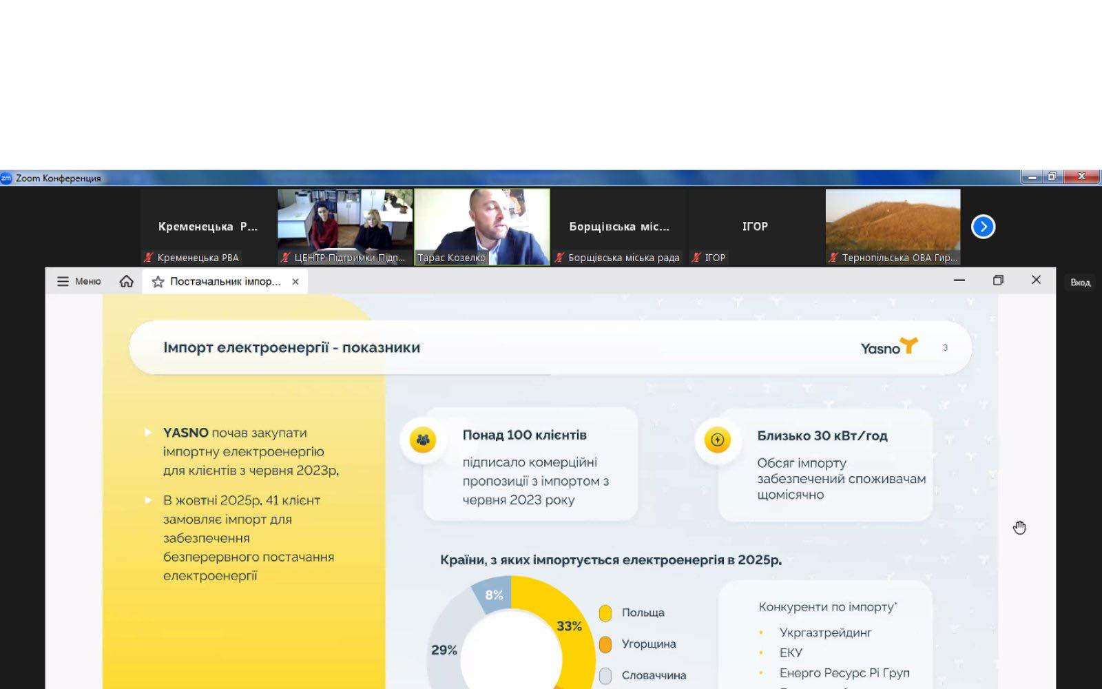 ему «Програми кредитування з енергоефективності та імпортна електроенергія для бізнесу», участь у якому в режимі відеоконференції взяв заступник начальника Кременецької районної військової адміністрації Роман Березовський разом з працівниками адміністрації.