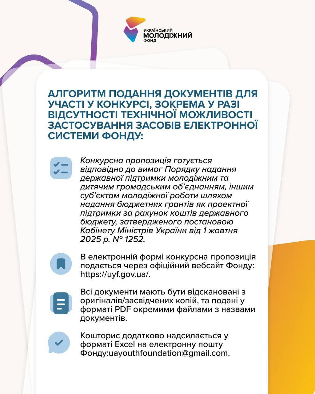 Подати заявку можна на сайті Фонду: uyf.gov.ua