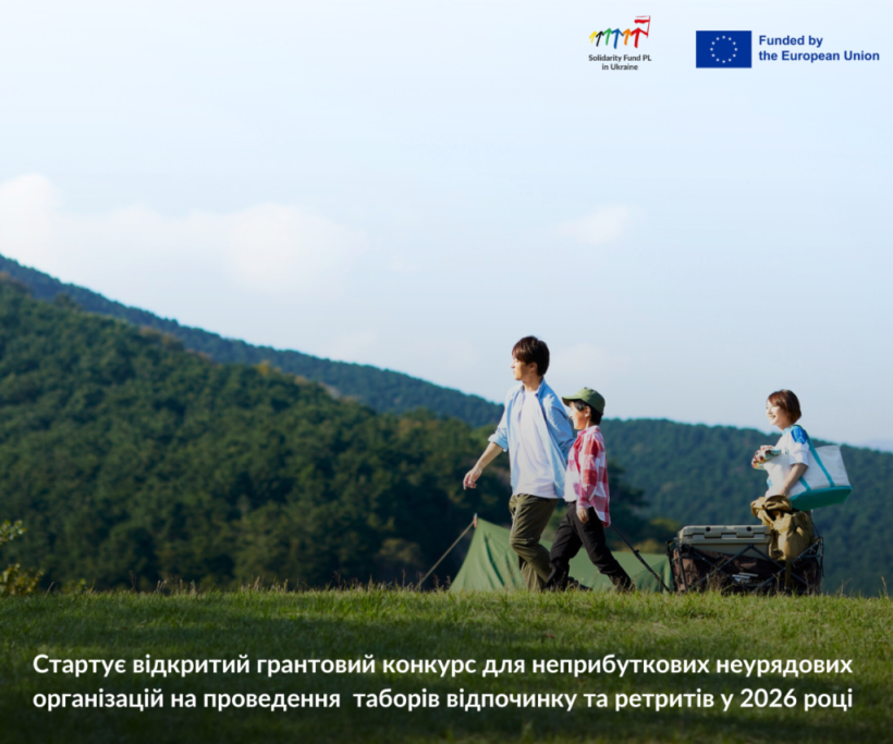 Представництво Фонду міжнародної солідарності в Україні оголошує відкритий грантовий конкурс для неприбуткових неурядових організацій на проведення таборів відпочинку та ретритів у 2026 році в межах проєкту «Комплексна підтримка дітей, сімей і громад, які постраждали внаслідок війни».