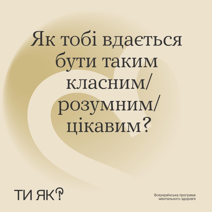 Дай знати близькій людині, що можна не відповідати стандартними «добре», «норм», «ок». Бо ти поруч, можеш та хочеш — вислухати, підтримати, допомогти.