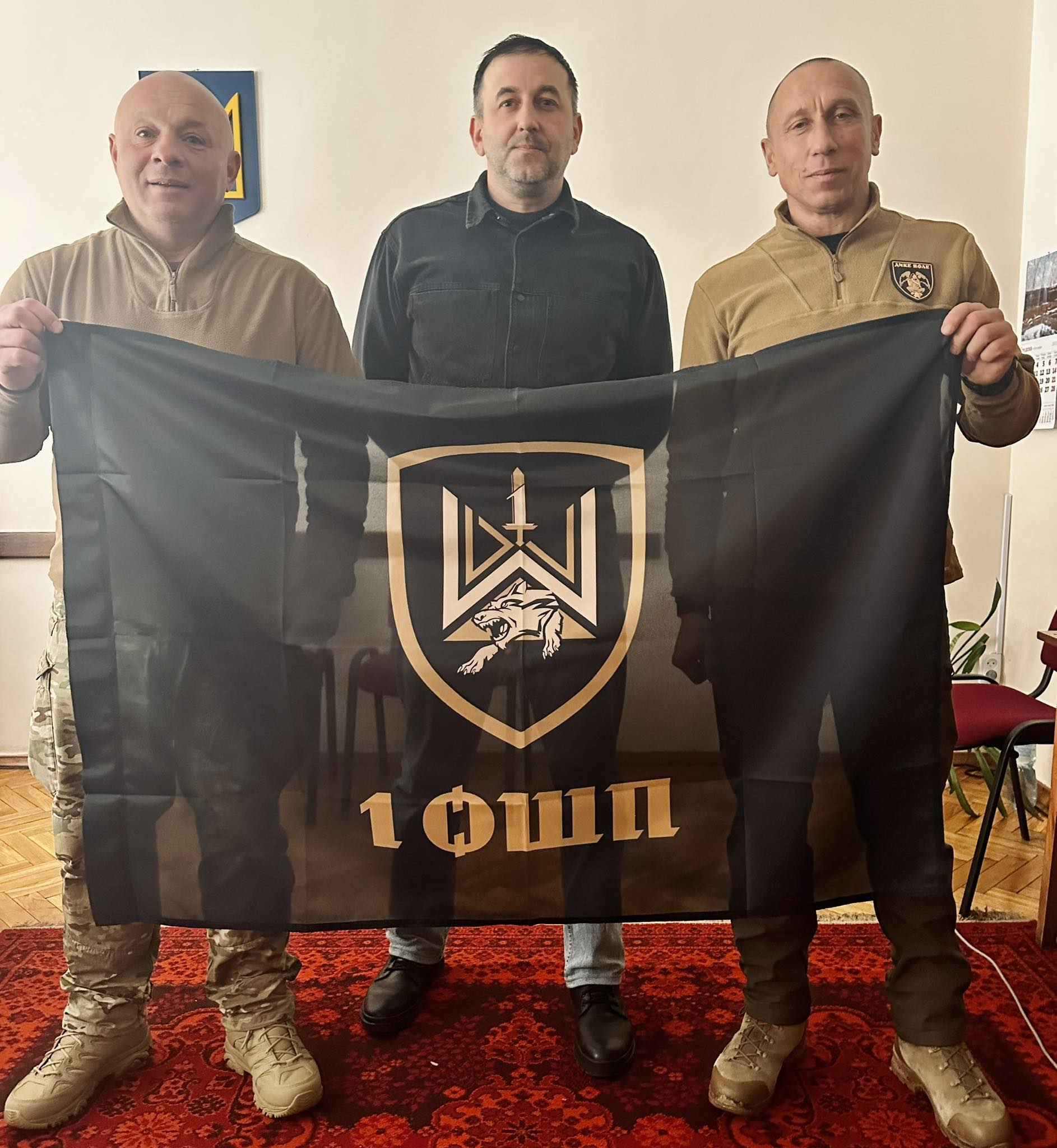 прапор легендарного підрозділу. Дякую за захист нашої країни, відчуваю гордість, стоячи разом із великими людьми, справжніми героями!"- наголосив начальник районної військової адміністрації Віталій Кудлак.