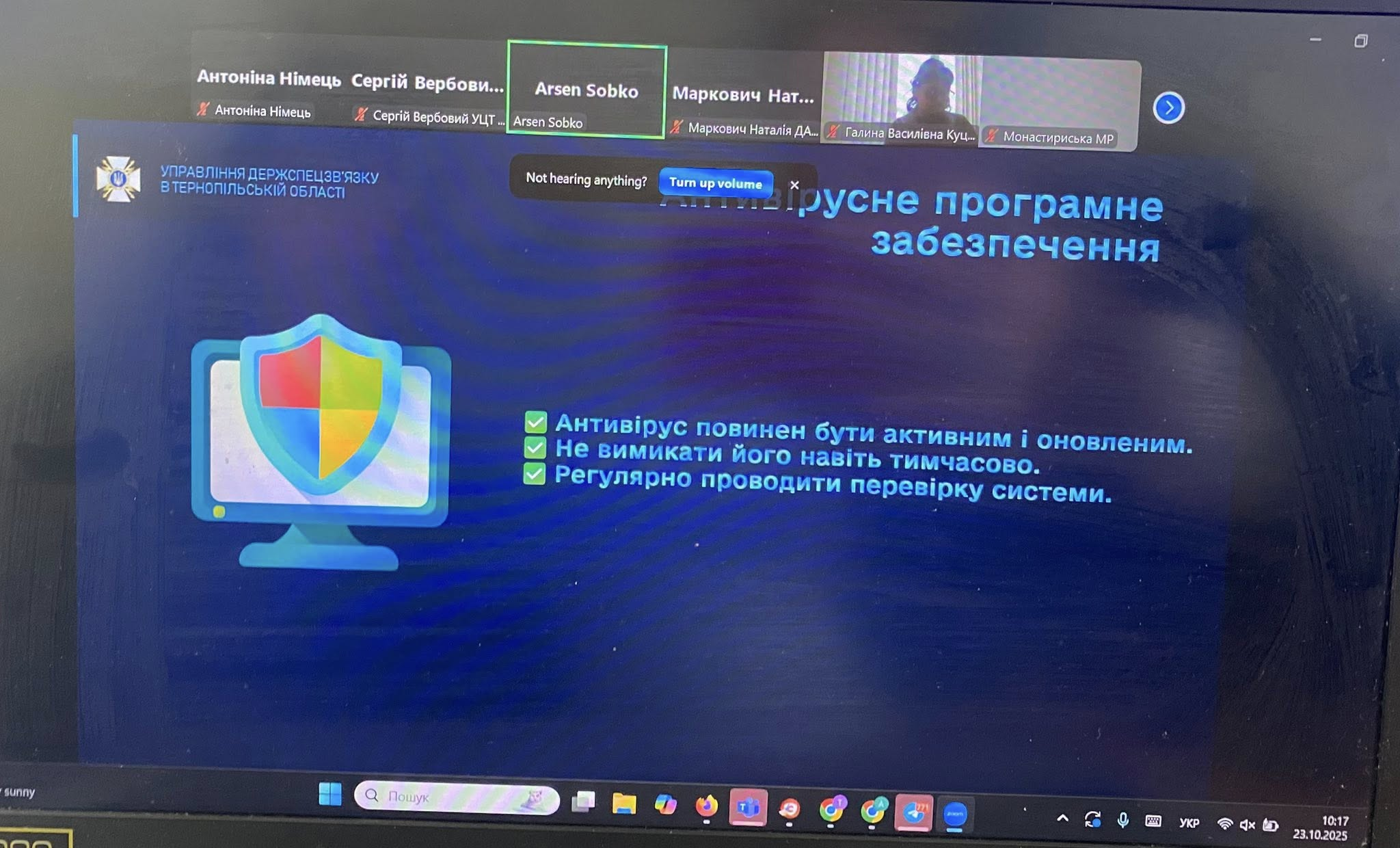 ехнологій у сучасному світі, 23 жовтня 2025 року працівники відділу цифрового розвитку районної військової адміністрації взяли участь в онлайн-вебінарі, спрямованому на підвищення обізнаності та навичок із кібербезпеки, профілактику онлайн-загроз і формування культури кібергігієни серед працівників державних установ.